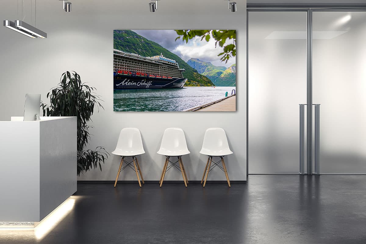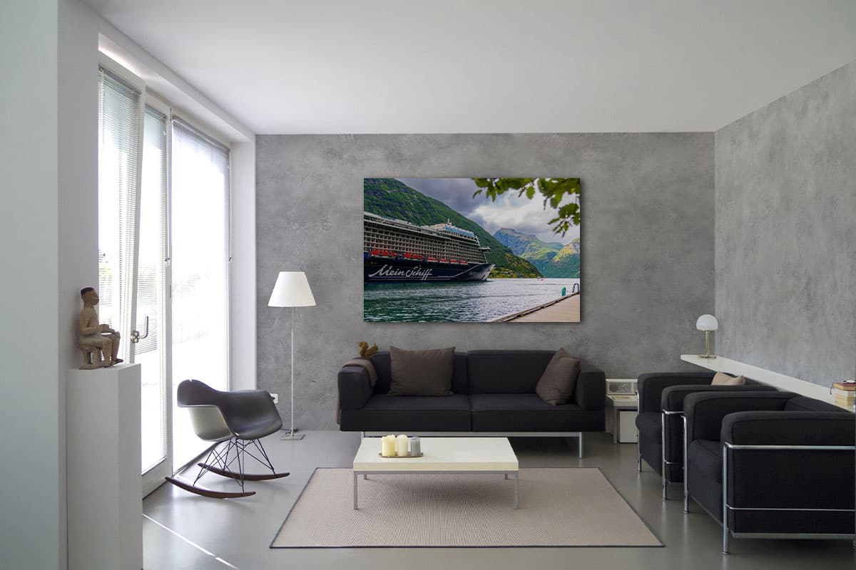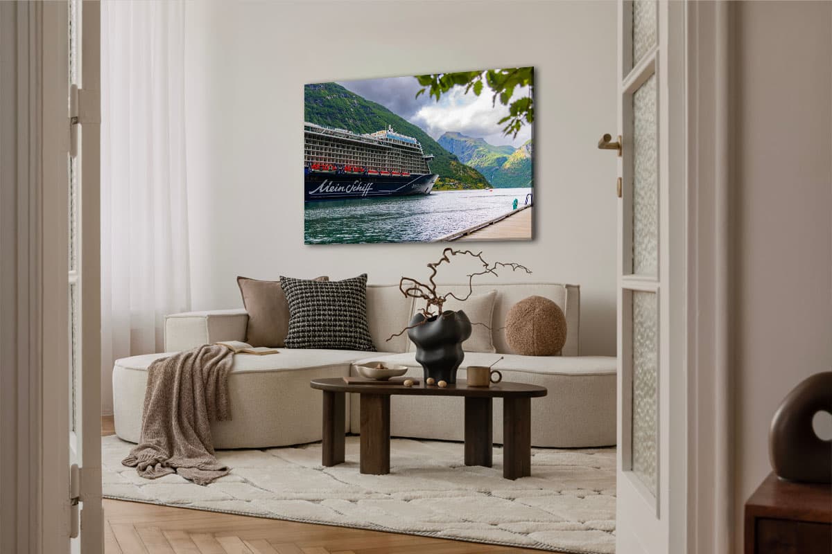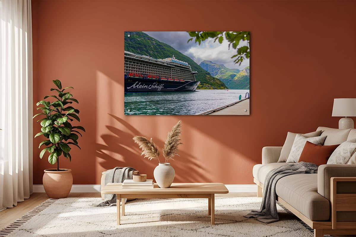 Es ist ein Moment vollkommener Stille und Erhabenheit: Die Mein Schiff liegt sicher vor Anker, umgeben von den steilen, grünen Berghängen und dem tiefblauen Wasser eines norwegischen Fjords. Mit dem Wandbild „Mein Schiff Fjord-Momente“ fängst du diese einzigartige Symbiose aus moderner Kreuzfahrt und unberührter Natur ein.