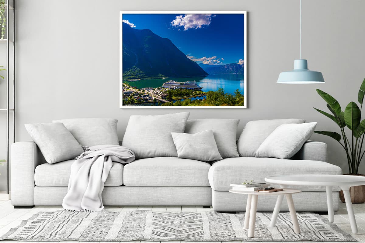 Hol dir den atemberaubenden Ausblick über den Eidfjord und das Gefühl von grenzenloser Freiheit direkt an deine Wand.