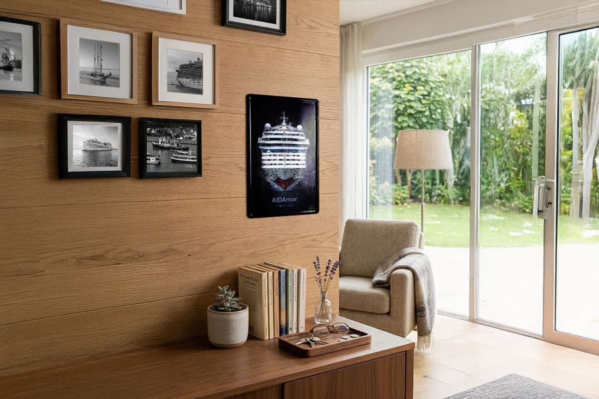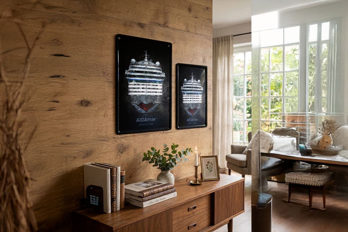Ein Muss für jeden Fan der Kussmundflotte und Liebhaber von nostalgischem Design! Dieses hochwertige Blechschild zeigt die AIDAmar, eines der beliebtesten Schiffe der Sphinx-Klasse, in einer imposanten Frontalansicht. Das Motiv fängt die majestätische Präsenz des Schiffes ein, als würde es gerade im heimischen Wohnzimmer festmachen.