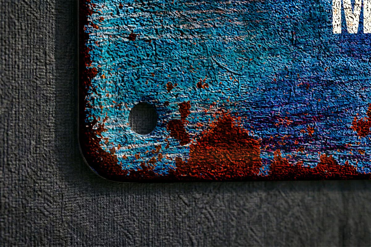 Qualität: Robustes Metallblech mit detailgetreuem Druck und wetterfester Oberfläche.