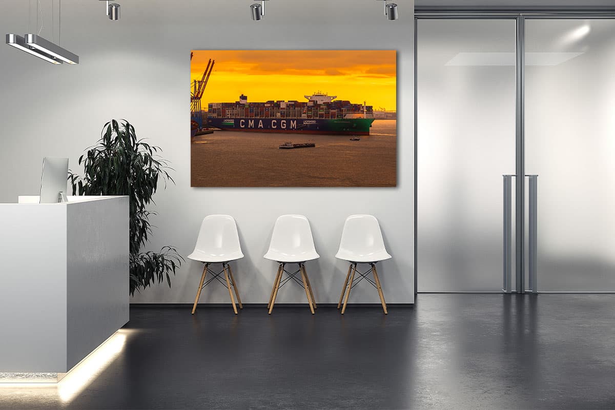 Wandbild: CMA CGM – Harbor Glow | Logistik-Gigant im Hamburger Gold