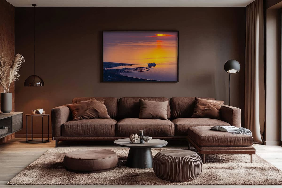Sagenhaftes Lichtspiel: Ein intensiver Sonnenuntergang, der jedem Raum eine warme und luxuriöse Atmosphäre verleiht.
