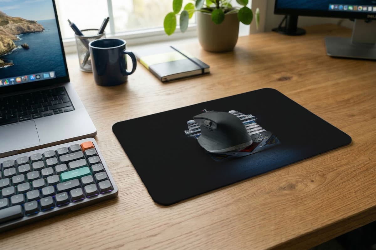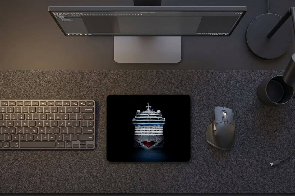 Mit der „dark edition“ des AIDAmar Mousepads holst du dir ein echtes Sammlerstück auf deinen Schreibtisch. Das Motiv bricht mit klassischer Postkarten-Idylle und setzt das Schiff stattdessen vor einem tiefschwarzen Hintergrund perfekt in Szene. Der Fokus liegt ganz auf der markanten Silhouette und dem ikonischen Kussmund, der im dunklen Kontrast besonders brillant zur Geltung kommt.