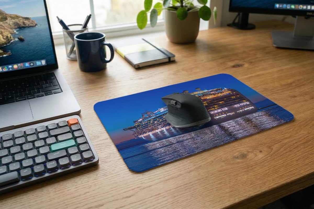 Das Mousepad „Emerald Princess im Seekanal“ bringt die magische Atmosphäre eines beleuchteten Kreuzfahrtschiffes direkt auf deinen Schreibtisch. Das Motiv zeigt die Emerald Princess in voller Pracht während einer nächtlichen Passage im Seekanal – ein Muss für jeden Shipspotter und Ästheten.