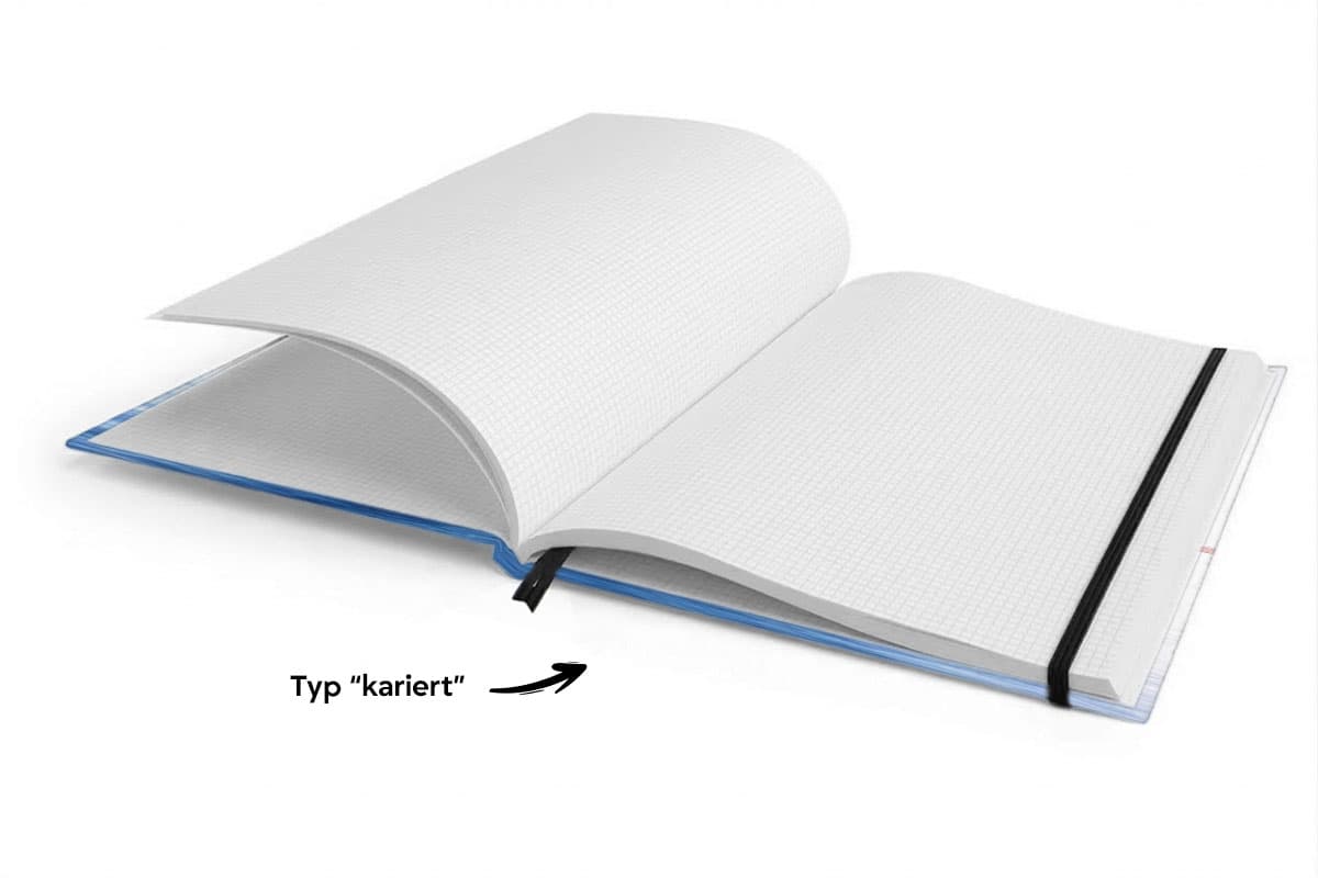 Flexibler Innenteil: Wähle zwischen blanko (ideal für Skizzen) oder kariert (perfekt für Struktur).
