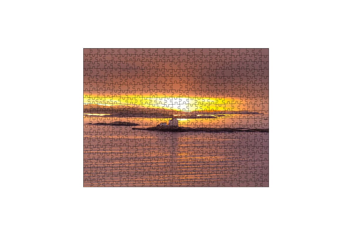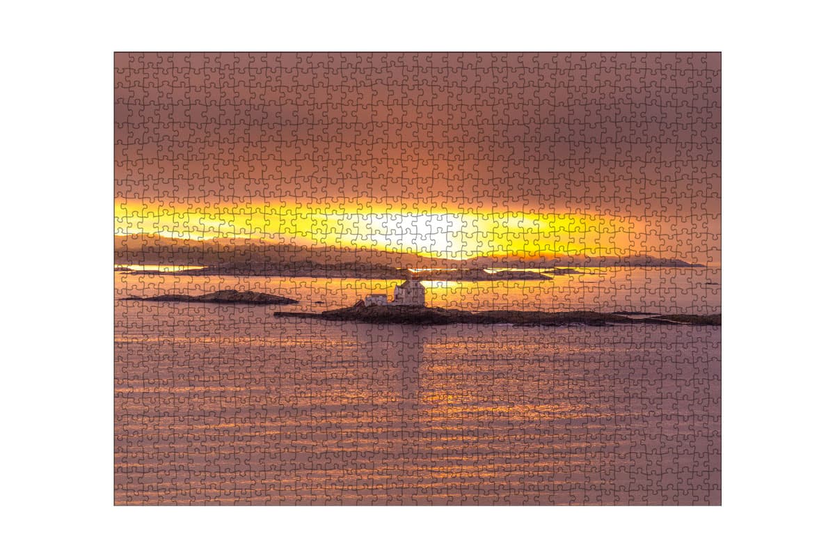 Hol dir die Ruhe und die magische Lichtstimmung des Nordens direkt auf deinen Esstisch! Das Puzzle „Leuchtturm Grønningen“ zeigt den markanten Leuchtturm vor Kristiansand in einem atemberaubenden Sonnenaufgang. Während du die Teile zusammensetzt, erlebst du, wie der feurige Himmel und die raue Schärenlandschaft Norwegens langsam Gestalt annehmen.