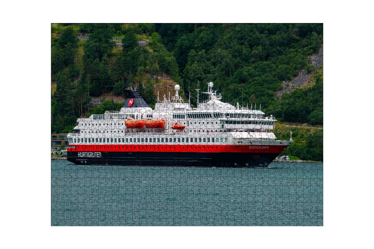 Puzzle: MS Nordkapp im Geirangerfjord – Postschiff-Idylle in Norwegen