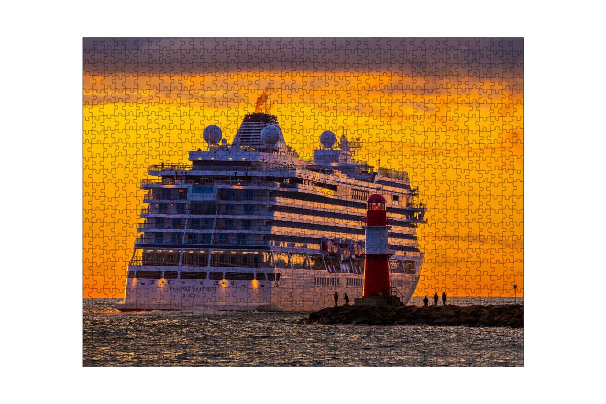 Puzzle: Viking Saturn am Molenfeuer – Goldener Abschied aus Warnemünde