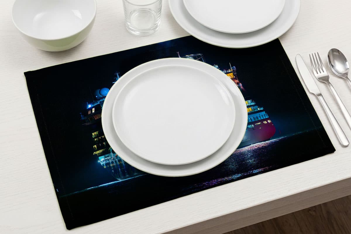Mit dem Tischset „AIDAdiva – Aufbruch zur Weltreise“ wird jede Mahlzeit zu einer kleinen Reise. Das beeindruckende Motiv zeigt das Kussmundschiff AIDAdiva in voller Pracht während einer nächtlichen Ausfahrt. Die festliche Beleuchtung des Schiffes spiegelt sich glitzernd auf der dunklen Wasseroberfläche wider und fängt die magische Atmosphäre eines großen Reiseaufbruchs perfekt ein.