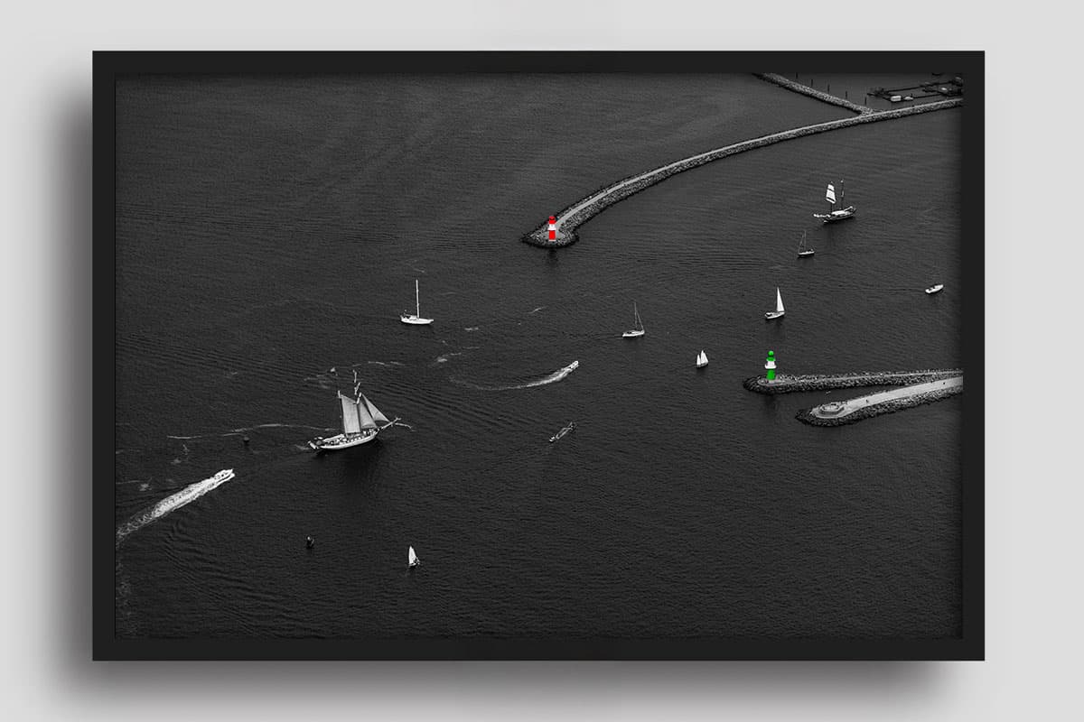 • Stil: Edles Schwarz-Weiß mit Color-Key-Effekt (rote und grüne Molenfeuer).